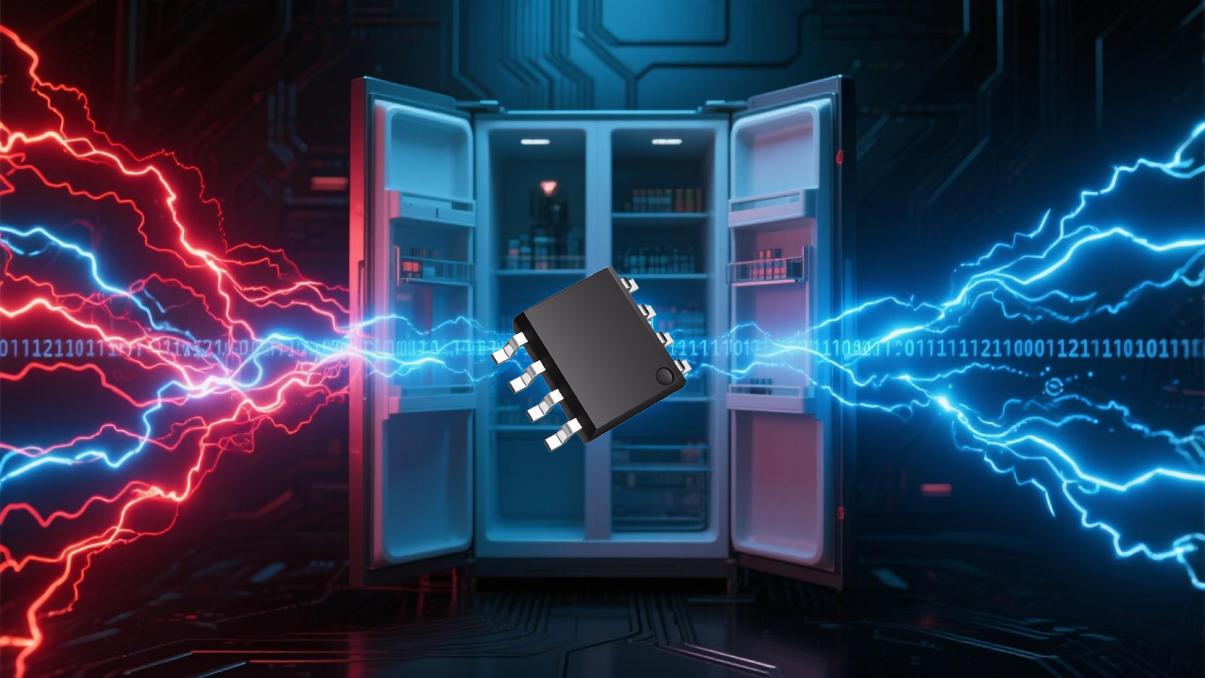例如,在现代节能冰箱中,数字隔离器可用于变频压缩机的精准控制,确保高速信号的稳定传输,防止高压反串损坏主控板,保障压缩机的精准调速;数字隔离器可用于传感器信号的抗干扰处理,有效滤除功率器件运行时所产生的电磁噪声,确保信号传输的准确性;数字隔离器还可用于主控板、显示面板、语音交互与无线模块等多组件间的总线通信隔离,抑制共模干扰,保障数据传输稳定,实现多模块协同工作。